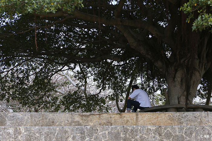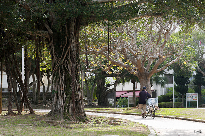 이번 오키나와 또한 지난 방콕 여행처럼 큰 계획이 있는 게 아니라 눈에 보이는 대로, 발이 이끄는 대로 돌아다니기로 했다. 오키나와에서의 유일한 계획은 <츄라우미 수족관>뿐. 하나를 더 찾자면 자전거 타고 <아메리칸 빌리지> 가기 정도. 그렇게 돌아다니다 오키나와에서 처음 만난 공원. 이 분위기에 반해 또 마침 국제거리로 이어지는 공원이라 여행 내내 이 공원을 자주 오갔다.