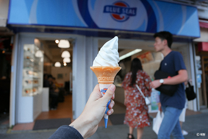 쉬기 위해 호텔로 돌아오는 길에 P가 사준 블루씰 아이스크림. 오키나와에서 먹은 처음이자 마지막 블루씰. 이름이 블루씰이라 '블루베리'가 들어간 아이스크림인 줄 알았다. 이 얘기를 하니 P가 나보고 참 단순하단다. 그럼 왜 블루씰인데? 오키나와에서 왜 블루씰이 유명한지 검색해보았으니 딱히 이렇다 할 답을 찾지 못했다. 한동안 잊고 있었는데 대체 블루씰이 왜 유명한 거야? 맛은 유명세에 비해 그냥 그랬다.