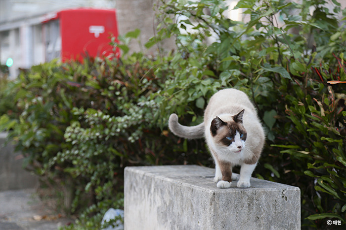 고양이 안녕. 이 고양이랑 검은 고양이 한 마리를 몇 번 마주쳤다. 고양이는 요정이야.