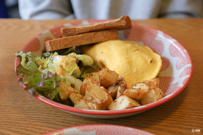 프렌치토스트는 딸기를 얹지 않았으면 조금 아쉬웠을 맛인데, 다행히 딸기를 추가해 먹을만했다. 돈이 더 있었다면 과일 토스트를 시켜 더 풍성하고 맛있게 먹었을 테지만 지금 주머니 사정에선 이 정도로도 만족. P는 오믈렛이 건강한 맛이라고 했다. 그 말에 먹어볼 마음이 사라졌다. 예부터 건강한 맛은 맛없단 말의 다른 표현이니까. 우리가 돈이 없었기 때문일까 그래도 기본적인걸 시켰는데 기대에 비해 별로였다. 분위기는 좋았지만 우리가 막 먹을 무렵부터 줄이 생기길 시작해 마음 편히 먹지도 못했다.