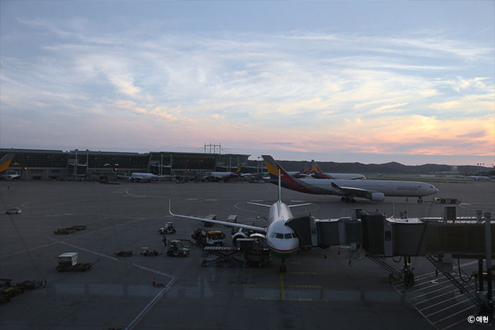 저녁 비행기라 세시까지 자다가 다섯 시쯤 나왔다. 집 앞에서 리무진을 탈까 하다 퇴근 시간과 겹칠듯해 오랜만에 전철을 탔다. 공항에 도착하자마자 발권을 하러 갔는데 내 예상보다 줄이 길었다. 하지만 나는 어제 미리 웹 체크인을 해두어서 바로 발권할 수 있었다. 수하물까지 보내고 나서 가벼운 발걸음으로 환전해둔 돈을 찾았다. 여행을 앞두고 공항에서 환전하고 나라에 따라 포켓와이파이를 찾는 순간이 가장 떨리고 행복해. 입국심사까지 빠르게 받고 들어와 면세점을 기웃거렸다. 지난 칭다오 여행에서 남은 위안화로 블러셔와 립스틱을 하나 사고 김밥까지 사 먹었다.