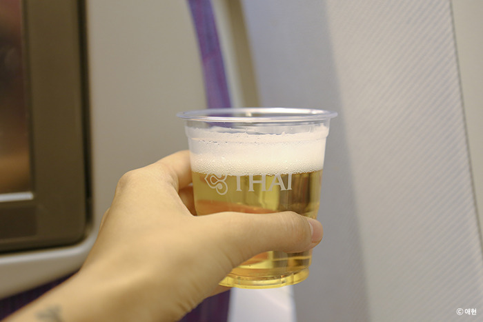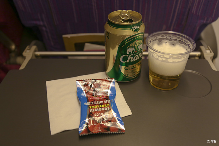 이륙하고 얼마 되지 않아 간식과 음료를 나눠주었다. 콜라도, 주스도, 그리고 와인도 있었는데 나의 선택은 맥주! 무제한으로 준단다. 하지만 나는 가볍게 한 캔만. 땅콩은 맛없었고 (칭다오 꿀땅콩이 훨씬 맛있다) chang 맥주는 내 입맛에 맞지 않았다. 그냥 하이네켄 마실걸 태국 간다고 괜히 태국 맥주 시켰네. 어쨌든 맥주와 땅콩 그리고 영화 「리틀포레스트」로 여행을 시작했다.