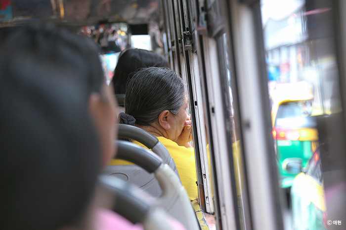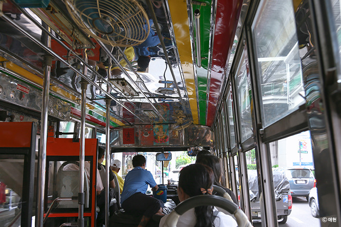 방콕의 모든 버스가 그런 건지는 모르겠는데 내가 탄 버스는 한국과 달리 버스에 탑승에서 자리를 잡고 있으면 직원이 돌아다니며 버스비를 받는다. 나는 버스비를 내며 직원에게 '팁싸마이에 갈 건데, 혹시 그 근처 버스정류장에서 내게 알려줄 수 있냐'라고 물었고 직원이 '알았다'라고 대답했다. 물론 버스 타고 가는 내내 나도 지도를 보며 위치를 확인할 거지만 혹시 모르는 거니까. 그리고 어느덧 팁싸마이 근처에 다다랐는지 직원이 내게 손짓하며 내리라고 말해주어 무사히 하차했다.