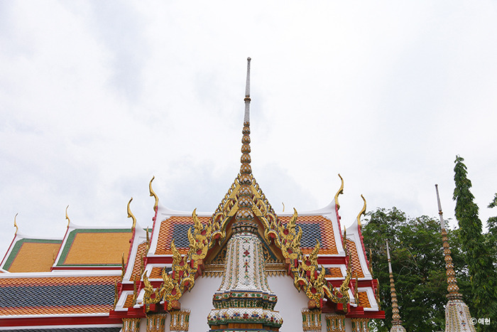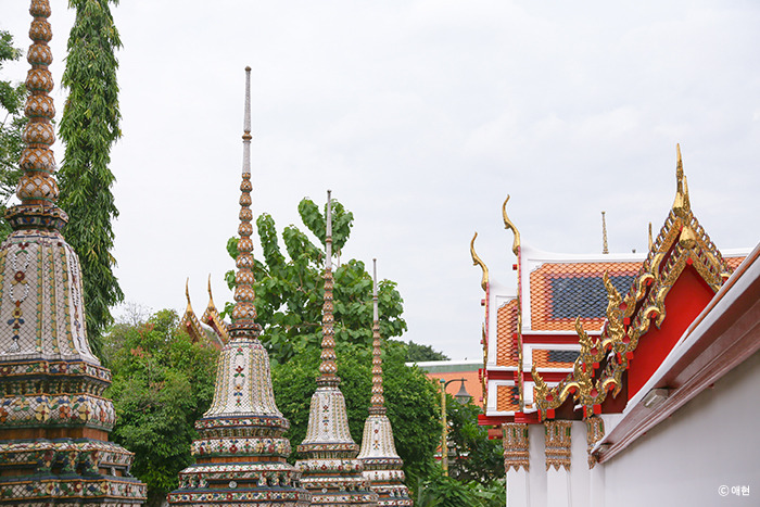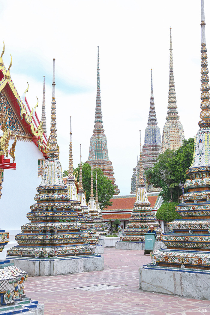 왓 포 사원은 꽤나 화려했다. 그 색이 아라비안 나이트를 연상케 했다. 홀로 독사진을 찍고 사원 여기저기를 찍다 보니 땀이 주룩 흘렀다. 아, 시원한 곳이 필요해. 이상하게 방콕 그 어느 곳에서보다 더위가 크게 다가왔다.