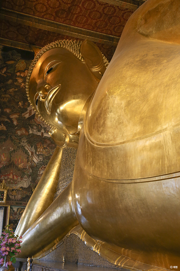 더위를 피해 와불상이 있는 실내로 들어섰다. 라마 3세의 명에 의해 제작되었다는 와불상은 그 크기도 크기지만 발바닥에 있는 자개 장식도 어마어마했다. 이 자개는 삼라만상을 담고 있다는데 내용은 잘 모르겠고 그저 세공에 감탄했다.