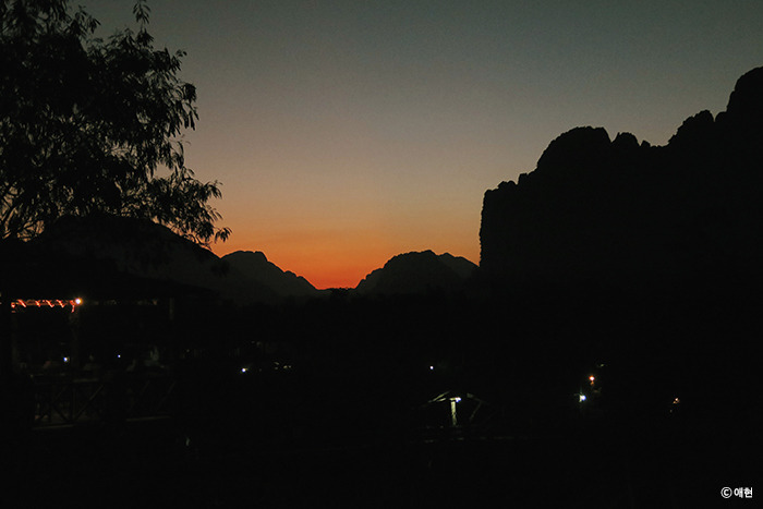 우여곡절 끝에 방비엥 도착. 나는 방비엥이 아닌 두 번째 휴게소에 도착한 줄 알았다.