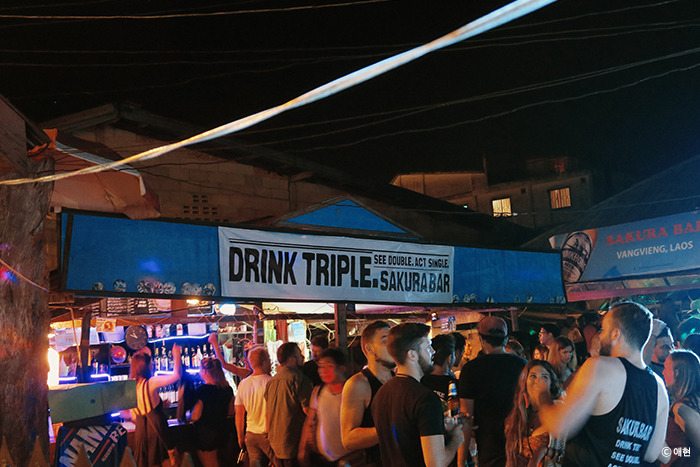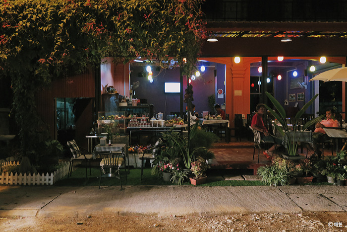 M이 가고 싶어 했던 <사쿠라바>와 그 맞은편 가게. 사쿠라바는 아마도 방비엥을 검색하면 프렌즈펍과 같이 꽤 보일 이름이다. 말 그대로 술을 마실 수 있는 바 bar인데 소문에는 대마초까지 피운다고 한다. 뭐 나도 대마초 하는 모습을 본 게 아니라 믿거나 말거나지만. 그러나 실제로 가본 사쿠라바를 떠올리면 그게 꼭 거짓말은 아닐 수도 있겠다는 생각이 들었다. 사쿠라바는 생각보다 훨씬 더 문란해 보였고, 안까지 들어가긴 했으나 도무지 어울릴 수 있는 분위기가 아니라 그냥 나왔다. 모두가 취해서 제정신이 아니었다. 사진은 왜 이렇게 건전해 보이지?