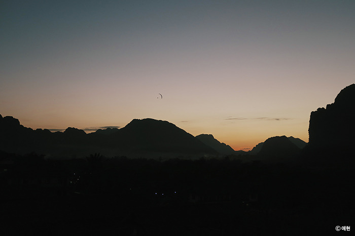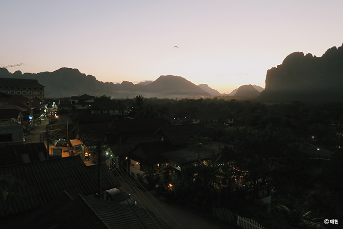 앞선 여행일기에도 적었듯 우리는 숙소와 도시 간 이동 방법 외에는 그 어떤 것도 제대로 알아보지 않았다. 그나마 알아본 것도 방비엥에 가면 뭘 해야 한대, 루앙프라방에 가면 뭘 봐야 한대 정도였지. 방비엥의 숙소 가는 법도 예외는 아니라 버스터미널에 도착하면 찾으려 했다. 보통 기차역이나 버스터미널에는 중심부로 들어가는 여러 교통수단이 있는 법이고, 구글 지도에 주소를 찍어 구글이 추천해주는 교통수단을 타면 금방 호텔에 도착할 거라 생각했다. 그래서 터미널의 모습이 생각과는 전혀 다른 터라 당황스러웠다. 다른 교통수단 (대게는 버스) 이라고는 전혀 찾아볼 수 없을 것 같은 호텔 주차장이라니.