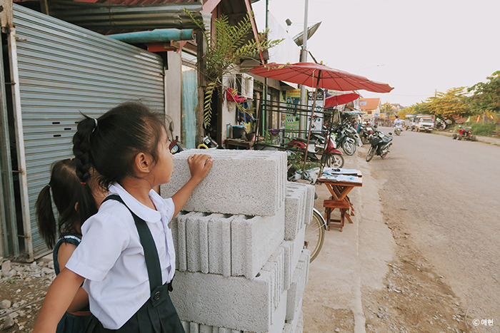자전거를 끌고 가던 아이도 바라본 곳에는