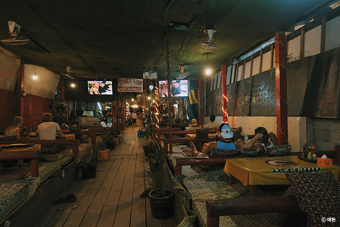 라오스 방비엥 여행을 찾다 보면 '프렌즈 펍'이란 단어가 따라온다. 처음에는 정말 단순하게 술을 마시며 친구를 사귀는 곳인 줄 알았다. 그러다 먼저 라오스에 다녀온 회사 동료가 프렌즈 펍은 미드 「프렌즈 friends」를 틀어주는 펍들을 일컬어 말하는 것이라고 말해주었다. 그러니까 술을 마시며 친구를 사귀는 곳도 아니고, 펍의 이름이 프렌즈 펍인 것도 아니고 길 한쪽에 쭉 늘어서있는 모든 펍들이 다 프렌즈 펍이었다. 그리고 정말 그 모든 펍들이 다 그 제니퍼 애니스턴이 나오는 그 「프렌즈」를 틀어놓고 있었다.