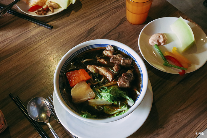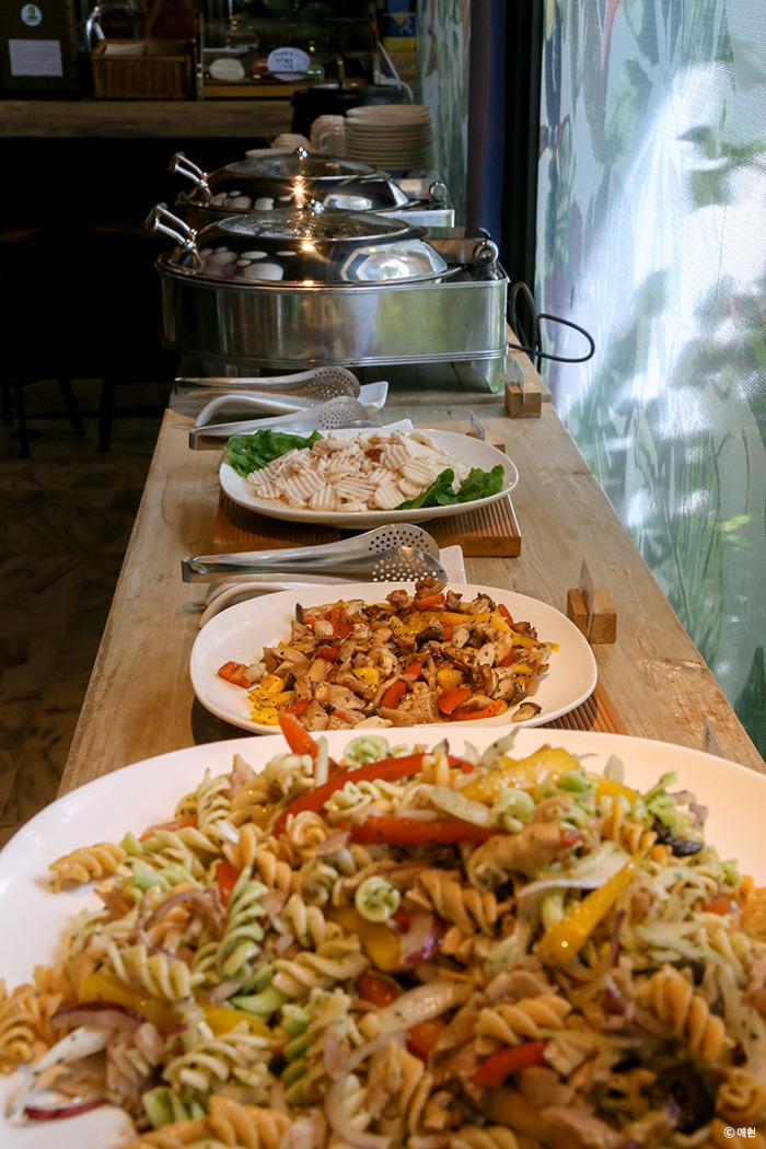 그렇다면 조식은 어떨까. 입구에서 메인 요리를 선택하고 자리를 안내받으면 나머지 음식은 여느 호텔처럼 뷔페식으로 원하는 것을 가져다 먹으면 된다. 메인 요리가 있어서 그런지 뷔페의 가짓수는 다소 적었으나 나름 알짜들로 채워놔서 괜찮았다. 나는 메인 요리만으로도 든든할 것 같아 이 중에서는 야채스틱만 가져다 먹었다.