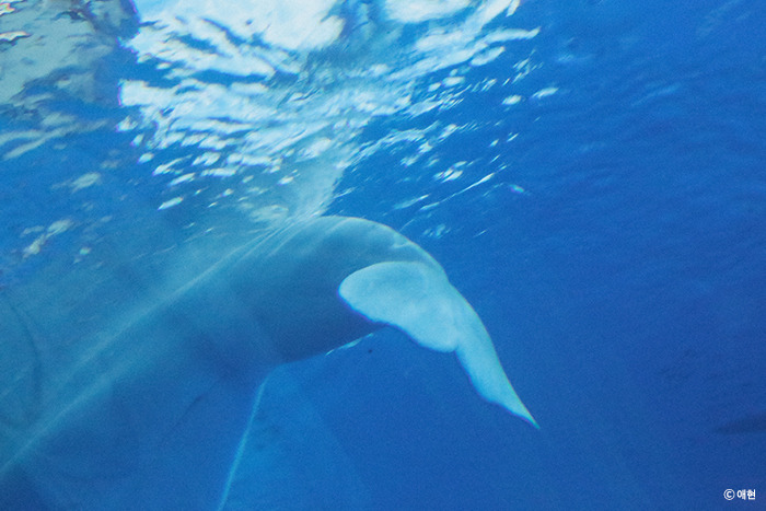 그 옆 관은 비교적 재미있었다. 엑소가 셀카 찍기 미션을 수행했던 가오리가 있는 큰 아쿠아리움도 있고 이곳에서 가장 유명할 벨루가도 있었다. 다만 가오리가 있는 아쿠아리움은 우리가 오키나와 츄라우미를 다녀와서 그런지 크게 느껴지지 않아 조금 실망했고, 벨루가도 많은 사람들이 몰려 꽥꽥거리는 통에 시장판에서 스치듯 본 게 끝이다.