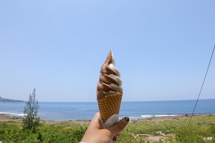 아무튼 엑소가 기념사진을 찍었던 곳을 찾아 사진을 찍었다. 그 사진을 찍을 때 멤버들이 아이스크림을 먹었잖아? 그럼 또 그걸 사야지. 엑소가 먹었던 아이스크림을 사들고 사진을 찍으려던 찰나, 뜨거운 햇빛에 줄줄 흘러내리기 시작한 아이스크림. 별 수 없이 먹는 사진은 포기하고 아이스크림 사진만 후다닥 찍고 그늘로 숨었다. 그러나 이미 녹기 시작한 아이스크림은 속수무책으로 우리의 손 위로 흘러내렸다. 이런...