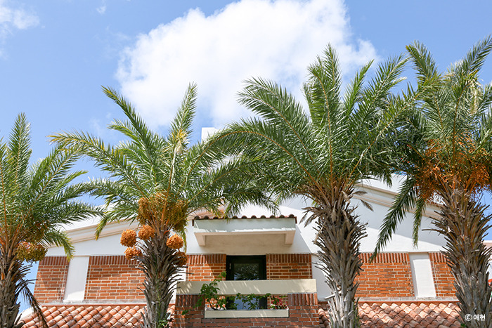 조식을 먹으러 문 밖으로 나설 때까지만 해도 비몽사몽인 상태였는데, 밖으로 나오자마자 잠이 확 달아났다. 저녁에 봤을 때도 충분히 예뻤는데 밝을 때 보니 더 예쁜 호텔과 호텔 주변 뷰. 거기다 구름까지 받쳐주잖아. 여행의 시작이 좋은 걸 보니 오늘 성공적인 '엑소 따라 하기'가 될 듯하다.