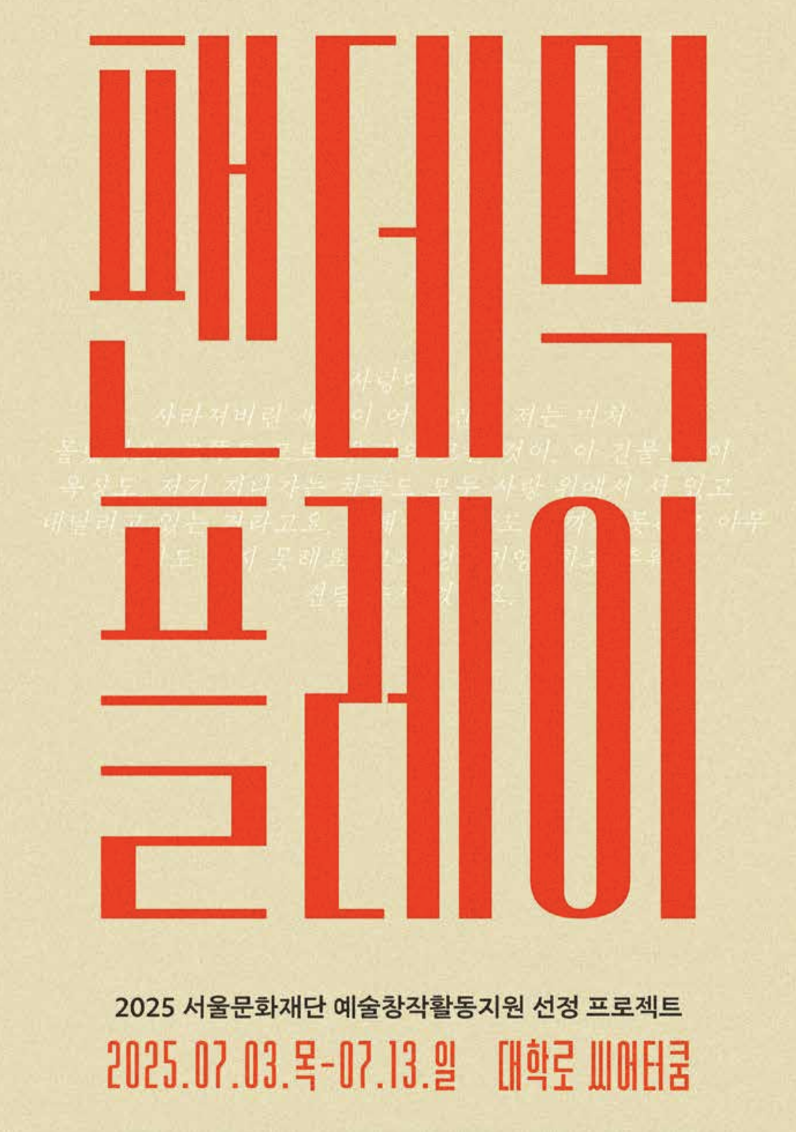 코로나 시대를 통과한 우리는 한 때 서로와 단절된 것이 안전한 세상을 살았고, 현재 AI 시대까지 온 우리는 서로가 서로에게 의지하여 무엇인가를 알아내고, 창작하는 것이 아닌 혼자 매달려 무엇인가를 성취하는 세상을 살고 있다. 이런 현대 세상 속에서 타인에 대한 연민과 관심, 그리고 그들과 연결되고자 하는 욕구에 대한 고민을 함께하는 <팬데믹 플레이>는 꼭 필요한 연극이 아닐까 싶다.