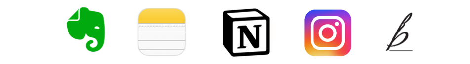 일기만큼은 아날로그와 거리가 멀다. 손때와 시간의 흔적도 중요하지만 내게 더 중요한 것은 "장소와 시간에 구애받지 않고 쓰는 것"이다. 그래서 내 기록의 도구는 반드시 '모바일' 호환이 가능해야 한다. 물론 첫 2년 동안 쓴 다이어리에는 그때만의 감성이 뭍어나 애틋함이 있다. 하지만 보다 텍스트 집중적인 방식은 메모 어플이 아닐까 싶다. 5년 동안 솜노트를 쓰다가 애플메모와 노션을 거쳐 현재는 에버노트에 정착하여 3년째 애용 중이다. 주 일기장이 에버노트 일뿐 사실 일상을 기록하는 데에는 애플메모, 노션, 브런치, 인스타그램, 구글캘린더 등을 모두 사용한다. (사실 모두 노션으로 통합하고 싶었으나 블록 단위의 노션은 텍스트 작업에 적합하지 않았다)