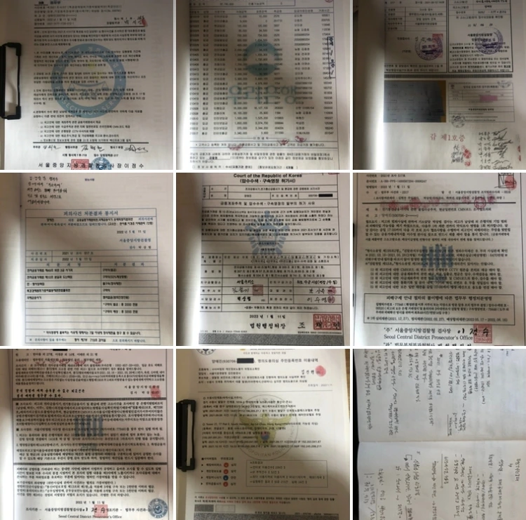 9. 이게 조금 조악해서 의심이 커지던 찰나에 갑자기 고소장, 대포통장 입출금 내역, 조사명령서, 압수수색 구속영장 허가서 등 이름만으로 겁먹을 만한 서류들을 왕창 보냄. 문제는 이게 꽤나 그럴듯하다는 것임.