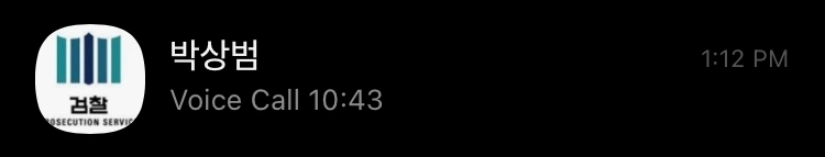 8. 현재 걸려온 번호를 저장해 카톡으로 이름과 생년월일을 보내라고 함. (이때는 일단 상대방이 아닌 내가 번호를 저장하는 것이라 상대적으로 쉽게 말을 따름) 카톡명은 ‘박OO’ 프로필은 서울 중앙지검 로고임.