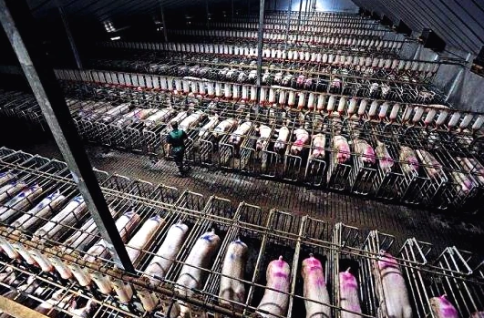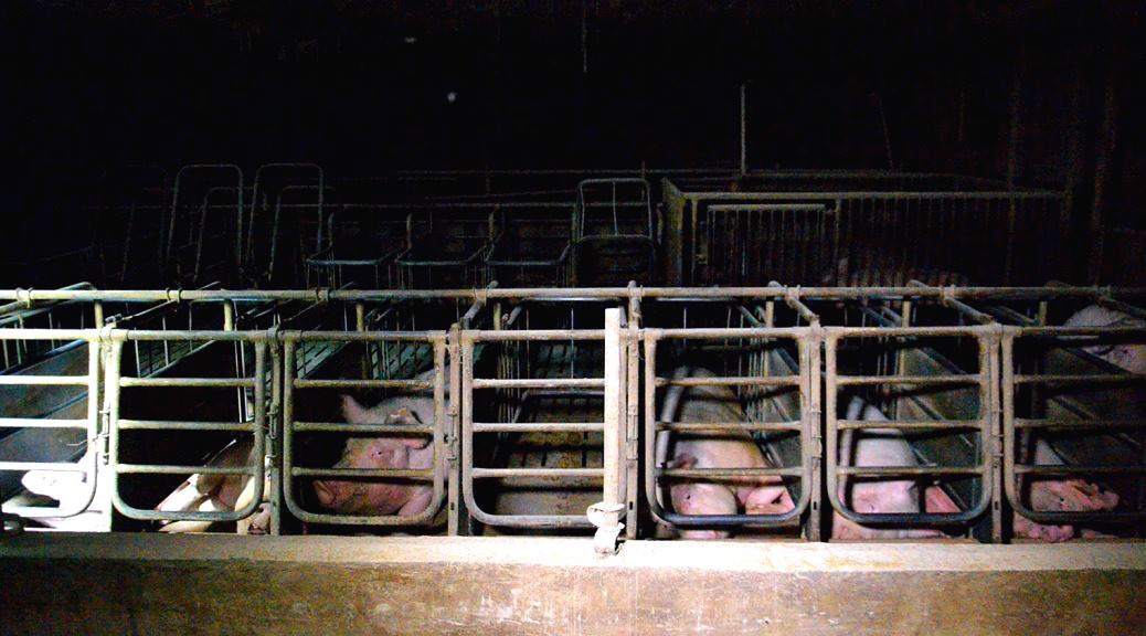 1. 돼지들은 보통 1평(3.3㎡) 채 안 되는 좁은 면적에 3마리씩 지내게 된다. 우리나라 돼지 사육장은 대부분 한 마리당 약0.2평(1.8m*0.65m)의 콘크리트 바닥과 철장으로 되어있다. 몸에 딱 맞는 침대, 그것도 등 다 배기는 딱딱한 돌침대 하나 있는 방인 거다.