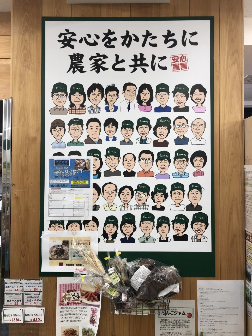 이를 증명이라도 하듯 바코드마다 생산자인 농부의 이름이 적혀있다. 이름을 걸고 판매하는 농산물이니 책임과 믿음이 커질 수밖에 없겠다. 심지어 카운터 옆에는 농부들의 얼굴을 캐릭터로 그려놓은 액자가 걸려있다.