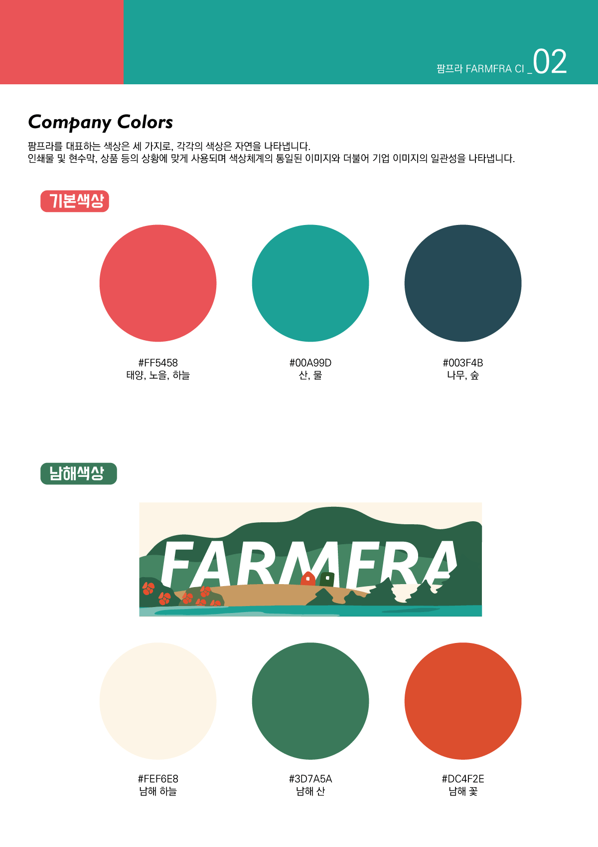 초기의 팜프라의 CI, BI, 색상은 모두 진주의 숲을 기반으로 했던 것이었다. 양의 기운이 가득한 남해에는 어울리지 않는 색이었다. 남해는 좀 더 밝고 청량함이 더해져야만 했다. 그리고 팜프라의 또 다른 브랜드 팜프라촌이 본격적으로 시작되었다. 집은 코부기 1호와 3호 2채에서 여러 채가 되었다.