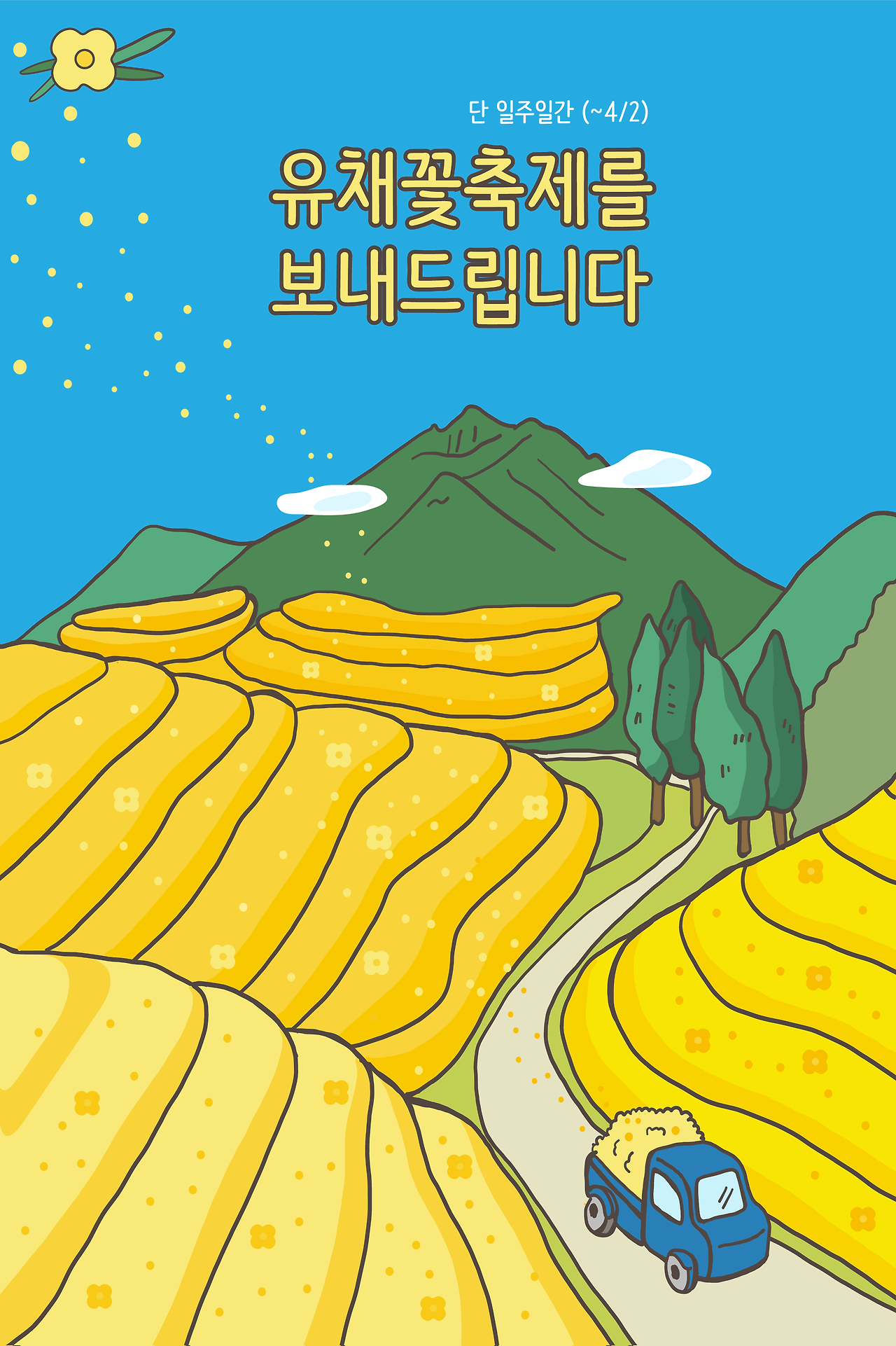 그 즉시 기획을 하고 포스터를 제작했다. '유채꽃축제를 보내드립니다.'