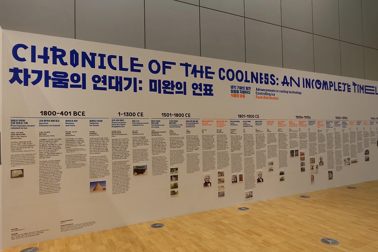 다른 전자기기들은 점점 작아져가는데 유일하게 냉장고만이 점점 커지고 세분화되어 간다. 냉장고 없던 시절은 상상할 수도 없을 만큼 일상의 필수품이 된 지금, 전시는 냉장고가 가져온 편리와 효율의 이면에 존재하는 다양한 문제와 이야기들을(도시, 유통 산업의 발달, 기후변화, 젠더 등) 역사와 환경을 넘나드는 다각적인 관점과 풀어냈다.