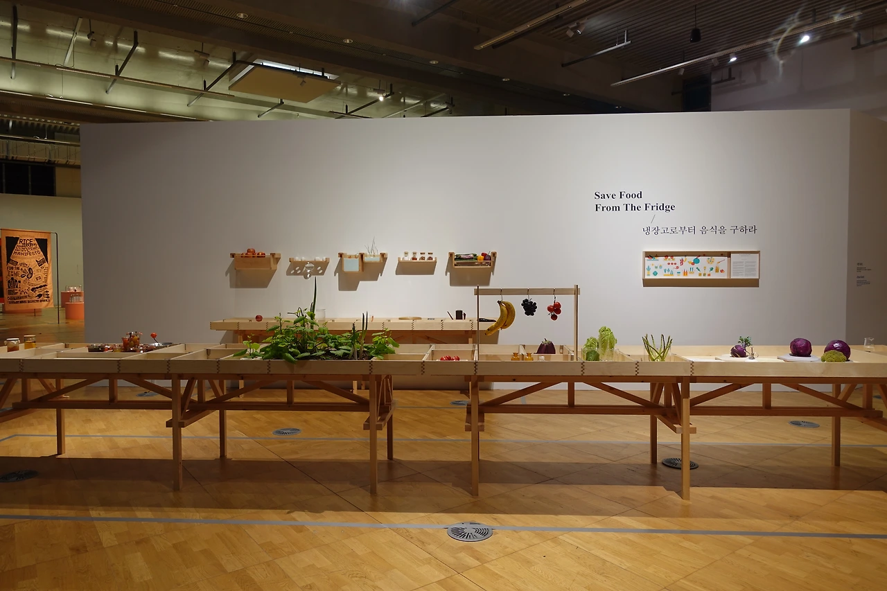 1부 얼음과 냉장고의 역사로 시작한 전시는 2부 3부로 진행될수록 전 세계적인 식량의 대량생산과 장거리 유통, 무분별한 식품의 소비문화, 잘못된 보관으로 인한 음식물 쓰레기 문제를 다루며 이슈를 점차 자본주의적 식량 체계로 확장한다.