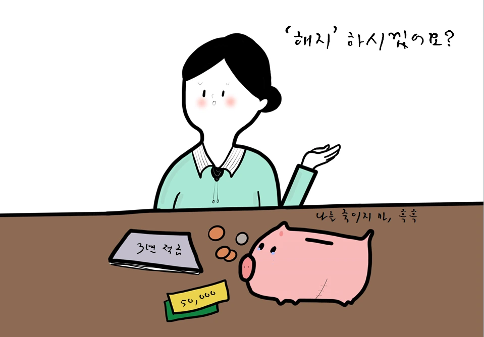 떨리는 손으로 은행원이 내어준 종이에 ‘해지’라고 쓰고 800만 원을 받아왔다.