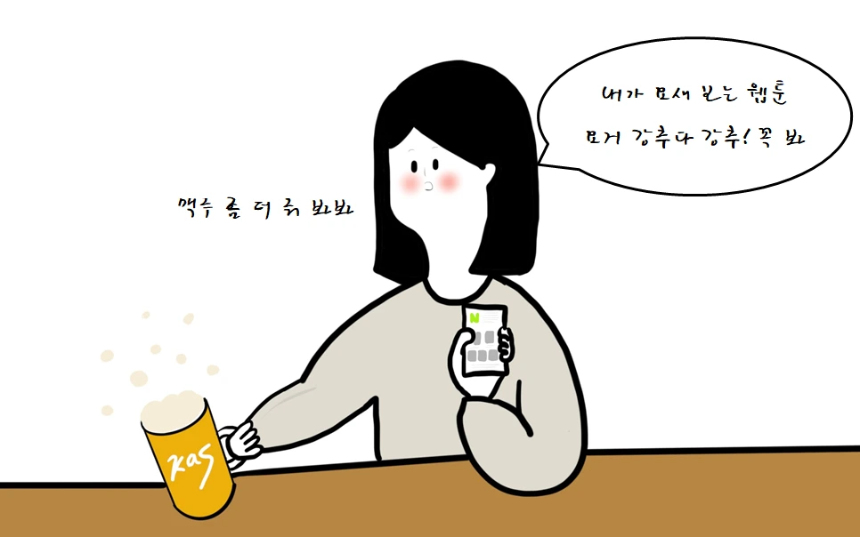 동기 중 한 두 명은 아예 웹툰을 안 보는지 '저게 다 뭔 소리야'하는 표정이다. 두어 명은 '나도 그거 알아! 나도 그 거봐!'라고 말한다. 또 다른 두어 명은 '그거 재밌어? 나도 볼까?'라고 말한다.