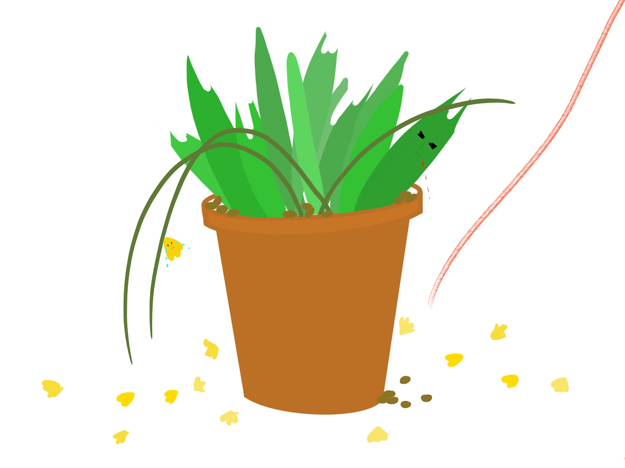 그렇게 하나하나 치웠다. 마지막으로는 바닥을 닦을 차례가 되었다. 바닥에 쭉 그어진 크레파스를 따라가며 닦는다. 크레파스의 끝 지점을 보니 화분이 보인다. 엄마가 오늘 주고 간 노란 봄을 닮은 화분. 그런데 얘가 그 잠깐 사이 가을이 되어있다. 샛노란 방울들은 화분받침에 눈을 감고 잠들었다. 방울들 옆 기다랗게 뻗어있는 초록 잎들도 뜯겨나가 오들오들 떨고 있었다. 그렇게 선물 받은 봄이 꺾여있었다. 아, 손이 떨리기 시작한다. 다른 건 다 참을 수 있었다. 나무의자에 포크로 흠집을 내놓아도, 바닥에 음료를 내동냉이 쳐놔도, 접시를 깨뜨려도, 소품을 망가뜨리거나 몰래 가져가도 괜찮았다. 솔직히 고백하건대 아직도 속으로는 부글부글 거리지만, 그래도 괜찮았다. 하지만 꽃이 꺾이니까 지금까지 참았던 마음들이 울컥하고 쏟아져 나온다. 내 마음속 폭풍우가 몰아친다. 봄은 순식간에 가을이. 가을은 그렇게 내 마음에 겨울을 몰고 왔다.
