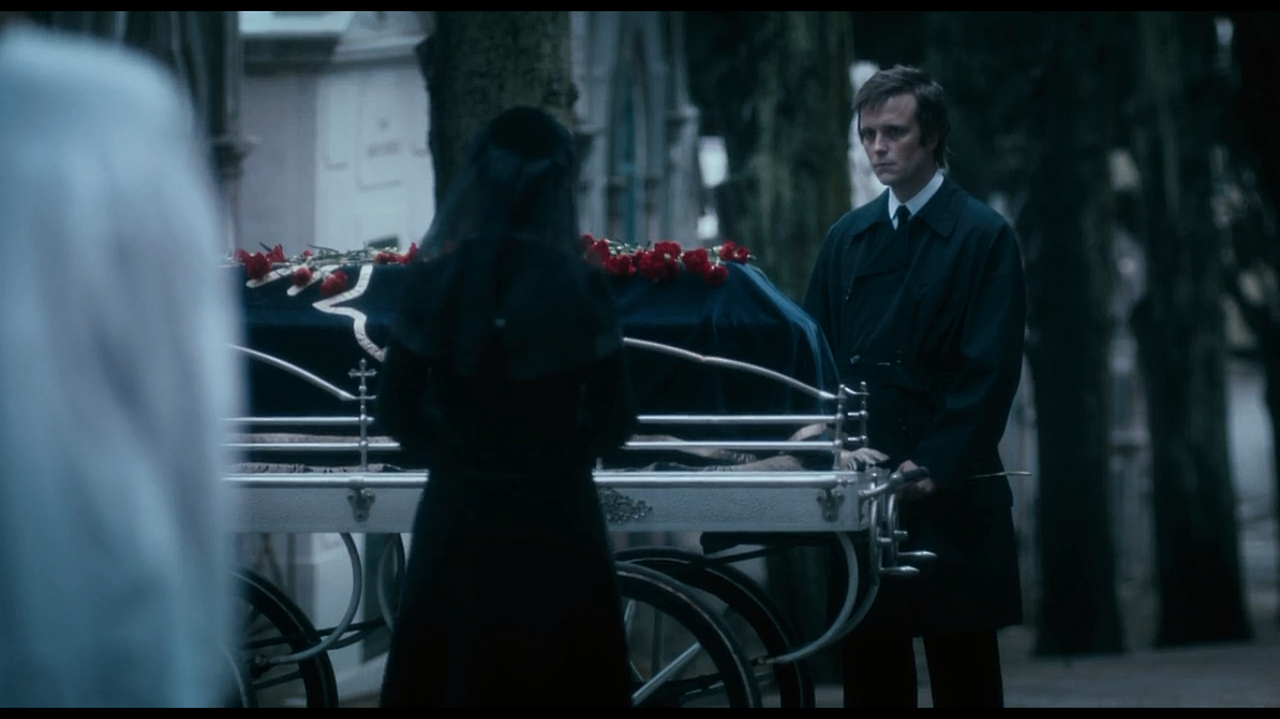 죠지, 그리고 그 앞에 마주선 검은 면사포의 여인.