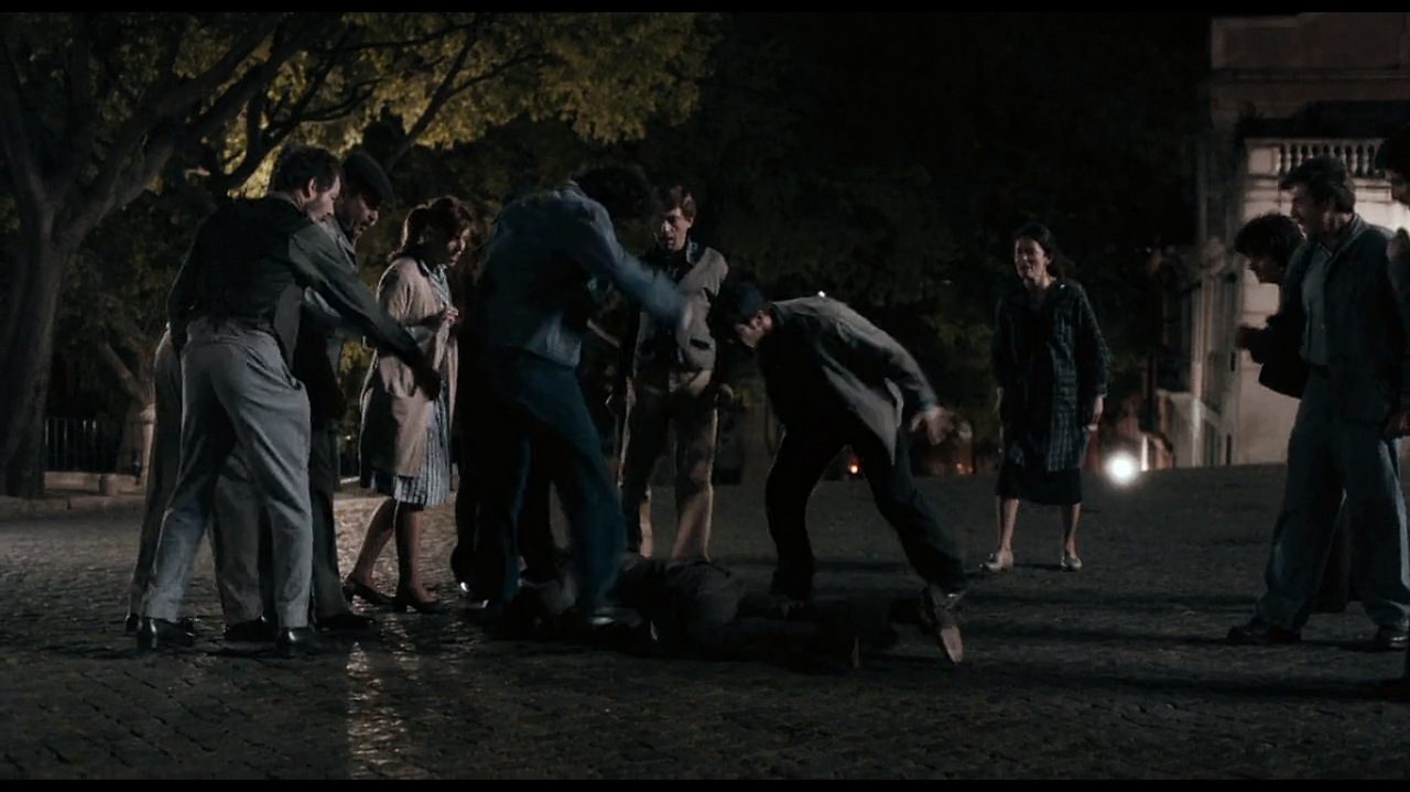 결정적인 순간을 살펴보자. 의사이지만 레지스탕스였던 그의집 앞에서 한남자가 마을사람들에 둘러쌓여 죽이되도록 맞고있었다.