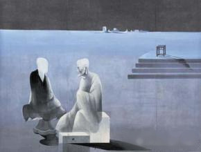침근은 초현실주의 관념과 중국전통 공필화의 조합을 꿈꾸었다. 이 작품에서는 '돈오(禅悟)' 불교 교의에 대한 갑작스러운 깨달음이라는 주제를 다루고 있다. 스승과 대화하는 제자는 이목구비가 아예 없는 사람이라고 할수없는 형태를 지니고 있다. 그들이 앉아서 대화하는 공간 또한 광활하고 공허하기만 하다. 원근법이나 빛처리 또한 차가운 느낌을 자아내는 회색빛이 지배적이다. 작가는 전체적으로 초현실주의적인 요소들을 수묵화작품 곳곳에 잘 녹여내었다.