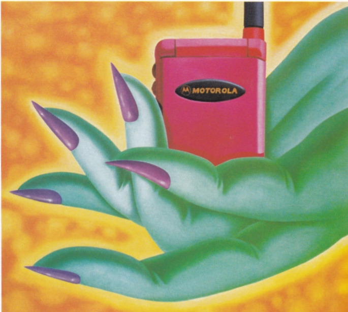 손이 등장한다. 그리고 그 손위에는 당시 최첨단 신식 핸드폰이었던 '모토로라' 모델이 놓여있다.