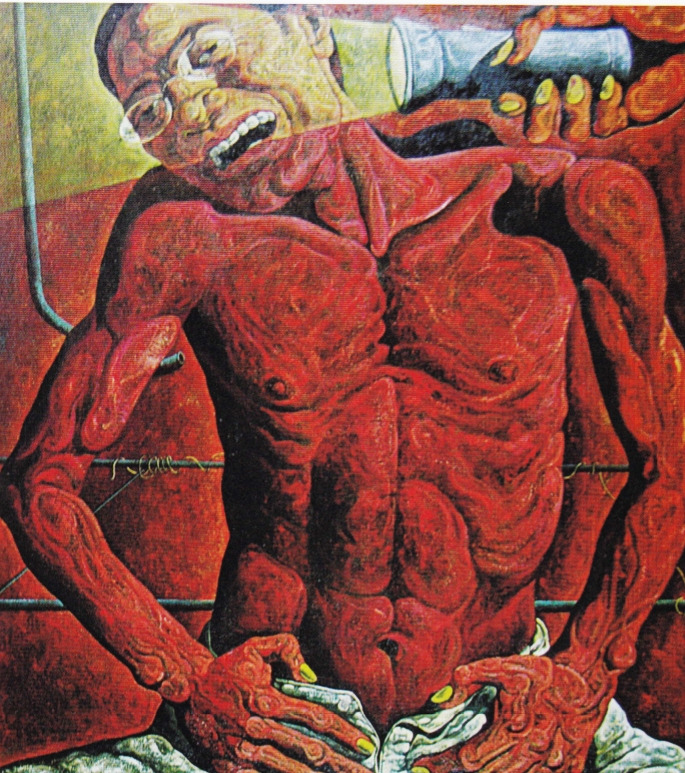 포피예술의 대표작가 유에민준의 1995년 작품이다. '바보같이웃는사람'은 유에민준 작품의 대표형상으로