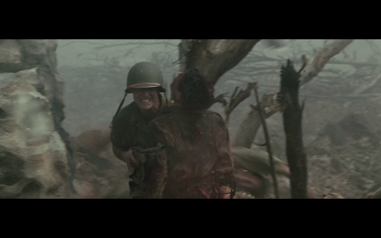 데스몬드는 미친듯이 뛰어다닌다. 잠시동안 누렸던 승리의 기쁨이 채 가시기전에, 인해전술로 밀어닥치는 일본군..어찌할 도리없이 그 곳에서 수많은 전우들을 잃었다. 그리고 다친이들을 남겨둔채 절벽아래로 도망쳐오기 바빴다. 하지만 데스몬드는 아직 그곳에 있었다.