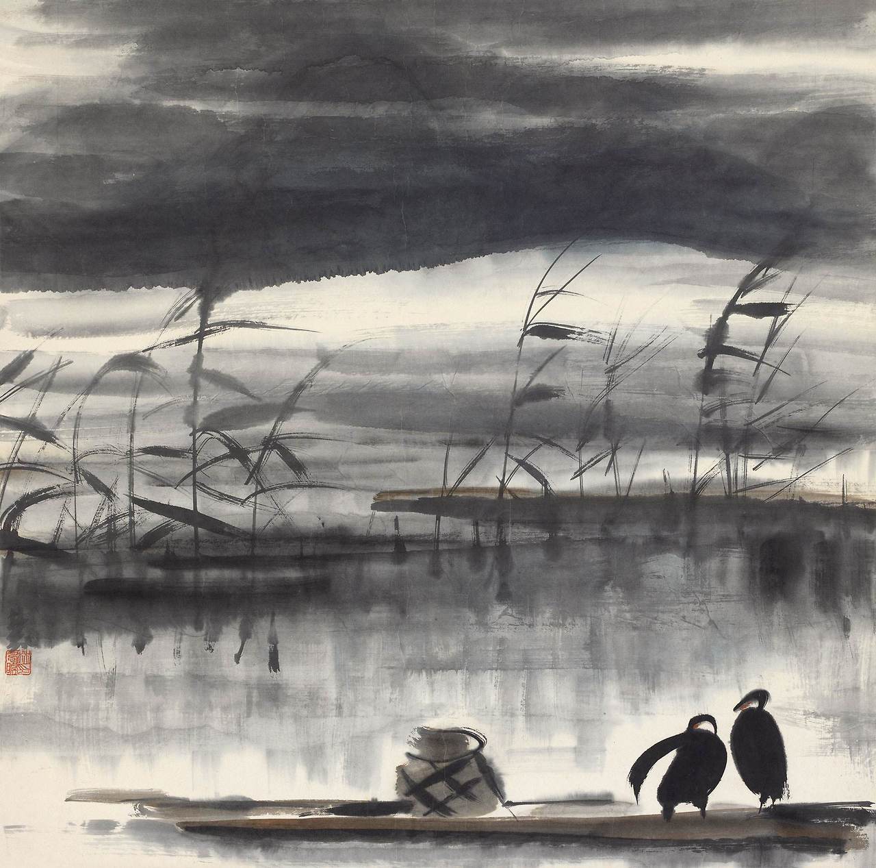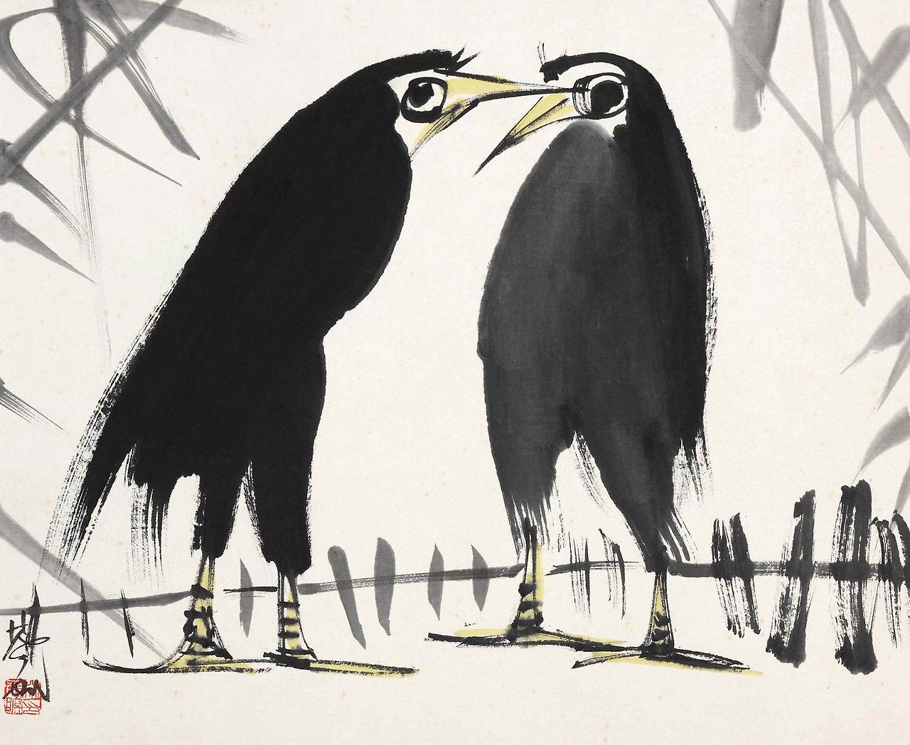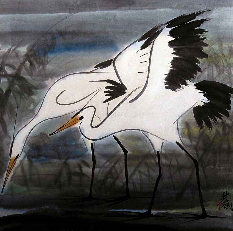 이 그림속 선들은 힘차고 명쾌하다. 속도감이 느껴지지 않는가? 유화처럼 한점한점 찍어서 하나의 형체가 완성되는 것과는 다르게 한번의 경쾌한 획과 힘있는 붓질로 형상이 생명을 얻게되는 것이다. 더불어 화가는 형태는 간략하되 고유한 핵심을 놓치지 않는 서양현대미술의 형태미를 그림속에 반영한다. 이는 중국 사의화의 핵심 미학이기도 하다.