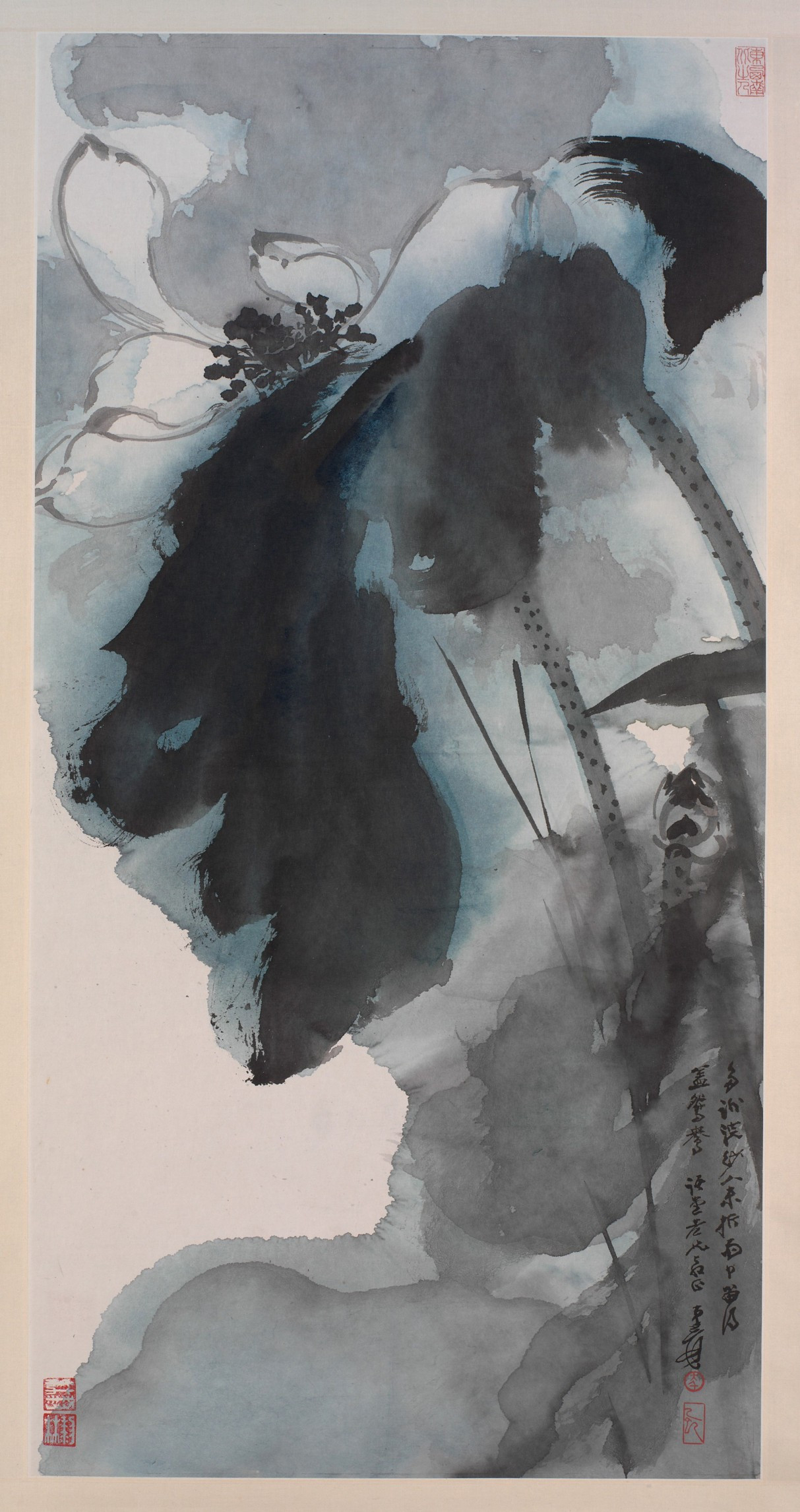 화가는 색채를 참 잘 썼다. 초기의 작품을 보면 독특하고도 강렬한 색채를 살펴볼 수 있다. 화가가 즐겨 그린 꽃 작품들을 살펴보자. 이 화조화 연작들은 화가의 독특한 색채 기법이 완성되어가는 과정을 잘 보여준다. 여기 이 꽃잎들은 같은 색임에도 다른 색조로 입체감이 드러난다. 화가는 다양한 색채를 자세하고도 정밀하게 표현해냈다. 이번에는 발묵 법으로 표현한 꽃이다. 연잎을 거침없이 먹을 이용해 그려냈다. 발묵 법은 강렬하고도 신비스러운 시각적 효과를 자아낸다. 화가는 이렇듯 강렬한 색채와 발묵의 기법에 모두 관심이 있었다. 그리고 후기에는 이 두 가지 기법을 사용해 독특한 몽환적 색채를 완성한다.