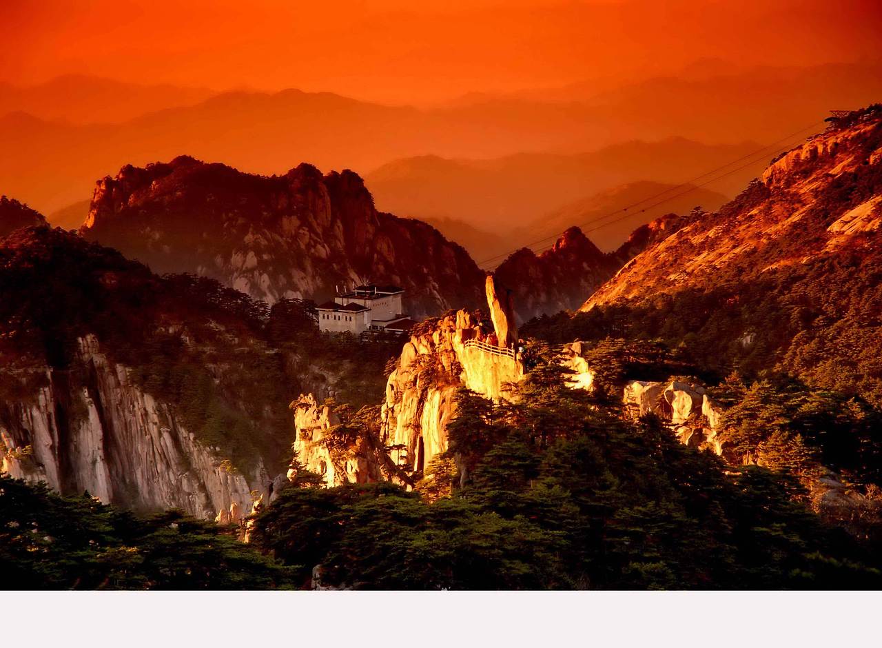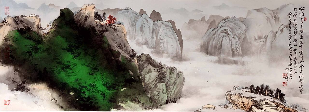 황산은 중국의 이름난 명산이다. 안휘성 남부에 위치해있으며, 이름 있는 산봉우리만 70개가 넘는다. 그때 당시 황산에 오른다는 건 지금 케이블카를 타고 단숨에 오를 수 있는 것 과는 너무나 다른 일이었다. 힘들고 고된 일이었다. 이 과정을 이겨내고 산꼭대기에 올라서면 황산의 아름다운 전경이 한눈에 펼쳐졌다. 그리고 그는 황산에서 몇 개월을 지내며 사생을 했다. 장대천은 황산의 높고 낮은 봉우리들의 다양한 변주를 열심히 담아냈다. 그리고 그는 특유의 용법으로 산수화를 그렸다. 산수화는 전통적으로 수묵으로 그린 수묵산수화와 청록색의 안료와 붉으스름하고 신비스러운 색채를 띄는 금벽 산수 두 가지 종류로 나누어진다. 장대천은 두 가지 장르를 조화롭게 섞어 새로운 맛을 발견해냈다. 그리고 거기에 추상적인 발채 법을 더해 몽환적 효과를 내었다. 황산은 장대천 산수화의 중요한 예술적 원천지였다고 할 수 있다.