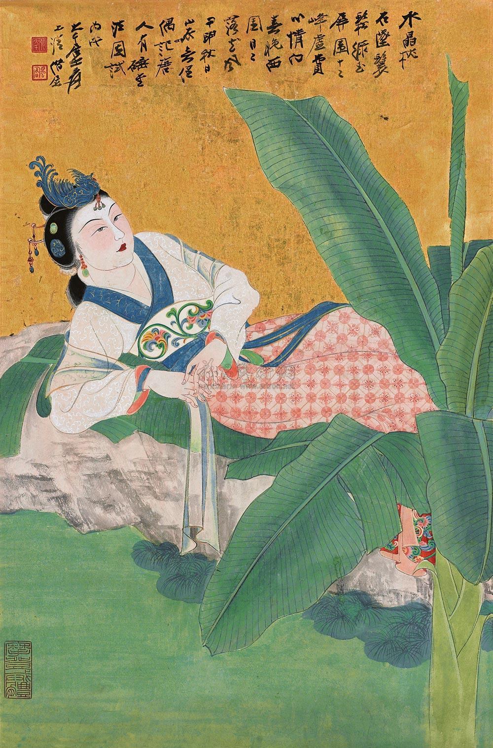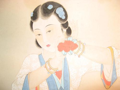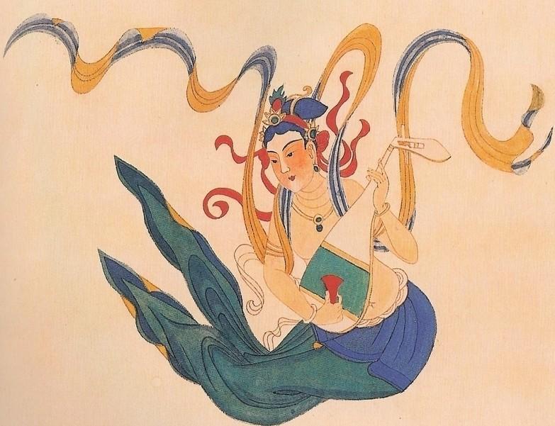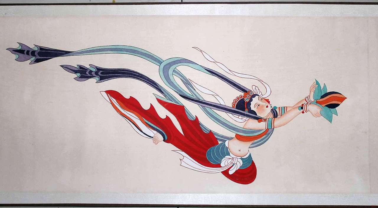 화가는 날아다니는 보살의 모습을 주로 그렸다. 먼저 화려한 장식들을 선하 나하나 공을 들여 정성스럽게 묘사해내었다. 선묘 외에도 색채 묘사에도 상당히 신경을 쓴 것이 보인다. 다채로운 색 묘사와 자세한 선묘 사는 단순히 전통 임모에 그치는 것이 아니라 한 단계 더 나아간 창작화라 해도 무색하다. 그의 작품들은 중국 인민들을 감동시켰다. 그뿐 아니라 중국화가들에게조차 생소했던 둔황 벽화들은 수많은 예술가들에게 영감을 주었다. 그리고 화가 본인 또한 이 임모 과정을 통해 예술적으로 많이 성숙을 했고, 독특하고도 아름다운 사녀화들을 많이 제작해내었다. 이 그림들을 보자. 둔황 임모의 영향으로 그의 사녀화는 신비롭고도 몽환적인 분위기를 띄고 있다. 구도와 사녀화의 자세가 상당히 독특하다. 기존의 전형적인 사녀 구도와는 확실한 차별점이 느껴진다.