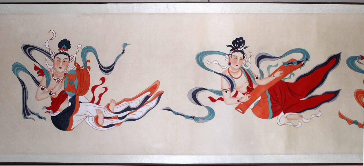 당시 중국 정부는 중일전쟁 및 공산당과 국민당 사이의 내전으로 중국 문화재 보호에 주의를 기울일 여력이 없었다. 그래서 여러 나라에서 노골적으로 돈 황벽 굴의 문화재를 파손하고 훔쳐가도 어찌할 바를 몰라했다. 보다 못한 장대천은 1940년 둔황으로 떠난다. 그리고 그는 체계적으로 동굴을 정리하기 시작한다. 모든 동굴에 일일이 통일된 번호를 달았고 3년이라는 시간을 들여 하나하나의 작품을 임모 하기 시작한다. 1943년 11월 270 여폭의 벽화 임모를 가지고 쓰촨 성 성도에서 전시회를 개최한다. 그림을 살펴보자.