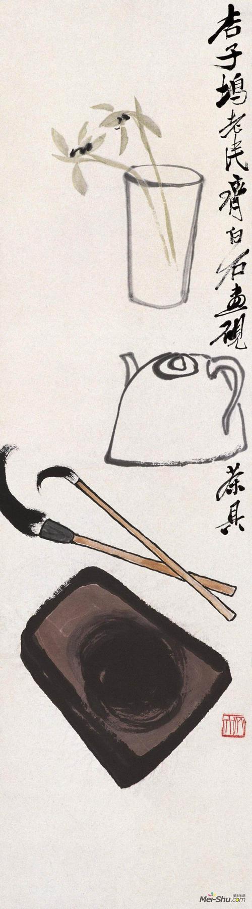 두 번째 키워드는 바로 “대중적 정서”다. 그의 그림은 이해하기 쉽다. 가장 큰 이유로는 작품의 소재자체가 우리일상과 밀접한 것들이기 때문이다. 제백석의 창작 주제는 주로 그에게 익숙한 생활 속에서 나온 것이었고, 늘 서민들과 밀접한 관련이 있고, 심지어는 일상적인 생산도구마저 작품의 소재가 되어 화면에 올려졌다. 제백석의 그림들은 늘 세속적이고 생동감 넘치며 경쾌한 분위기가 넘쳐났다. 또한 노동생활에 대한 사랑과 믿음으로 가득 차 있었다. 제백석 만년의 작품에서는 어릴 적 자기 손으로 다루었던 것과 눈으로 직접 본 것들이 많이 등장한다. 그림속의 장작, 호미, 삼태기 등은 모두 자급자족하며 이하는 백성들의 삶을 사랑하는 작가정신의 한 표현이다.