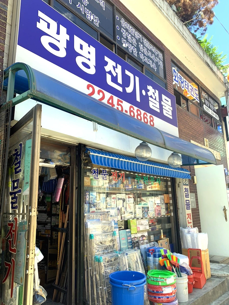 시작은 휘경동 286-334에 위치한 철물점이다. 광명 전기 철물점은 지하철역을 나와 우리집 가는 길목에 위치해 오고가며 500번쯤은 마주쳤을 것이다. 어쩌면 그 이상일테지만 가게에 발을 들인 건 이번이 처음이다. 가게 안은 생각보다 깔끔했다. 우리 생활에 필요한 물품이 아주 가지런하게 진열되어 있었다. 할머니로 비춰지는 주인분이 호들짝 놀라며 맞이해 주셨다. 기대하지 않았던 시간에 손님이 찾아와서 인지, 평균 연령보다 어린 손님이 와서인지는 모르겠지만, 나는 왠지 스스로 이 철물점에 왔다는 게 자랑스러운 마음이 들어 큰 소리로 인사를 했다.