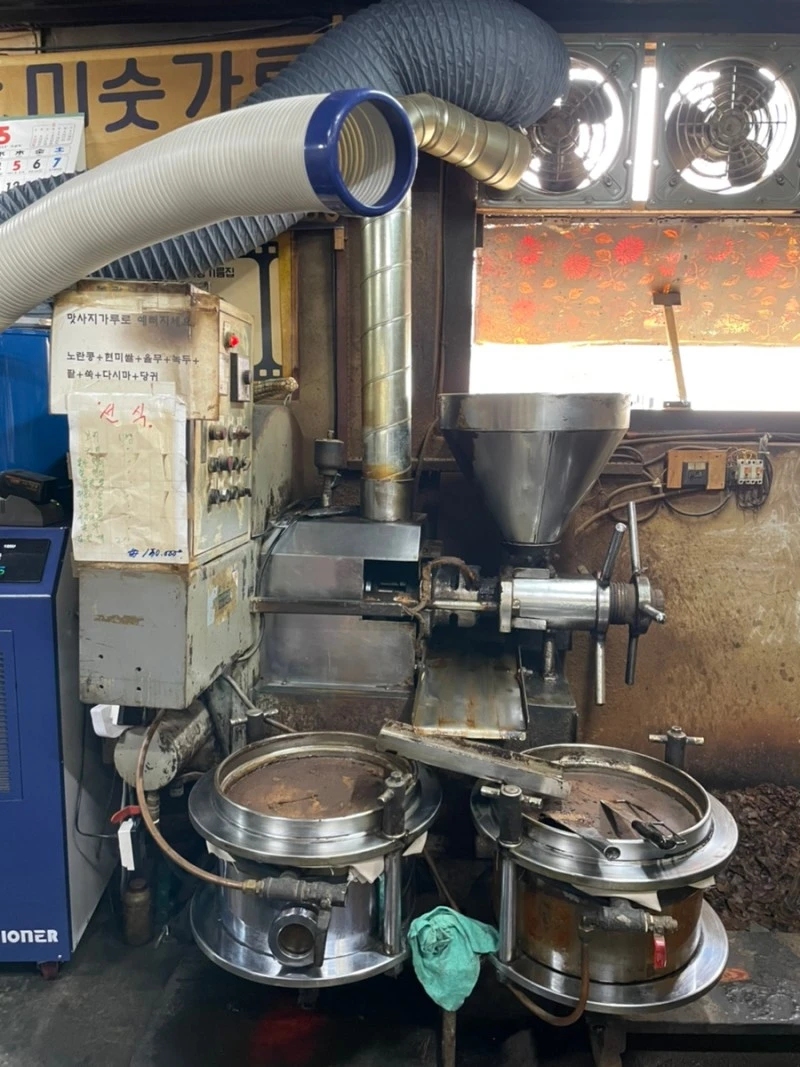 귀한 마음을 감사하게 받았다. 현재 참기름을 볶는 방식은 대부분 전기로 사용한다. 근데 여기 시장기름집은 석유로 깨를 볶아낸다. 옛날 방식을 그대로 사용하는 것이다. 기계에서 맛을 내는 것이 아니라 볶는 데서 맛을 낸다고 이야기한다. 여름엔 무척 덥고 힘들긴 하지만 맛을 위해 고집하고 있다는 그녀의 목소리에서 자부심이 느껴진다.