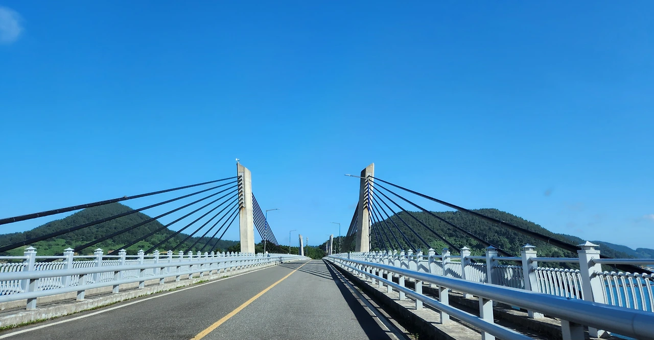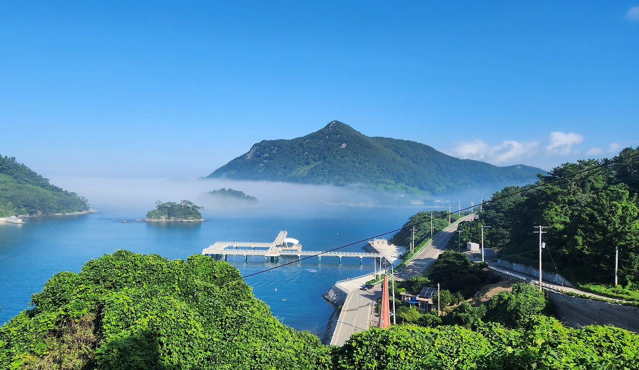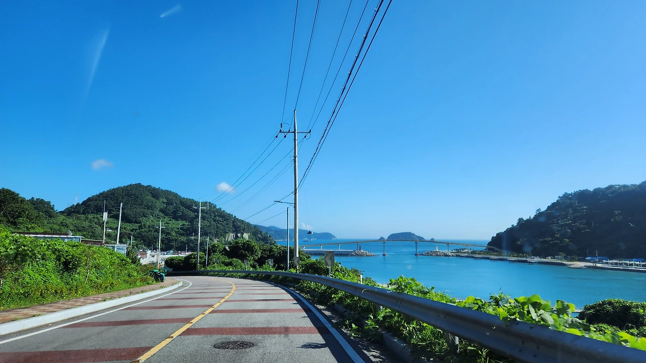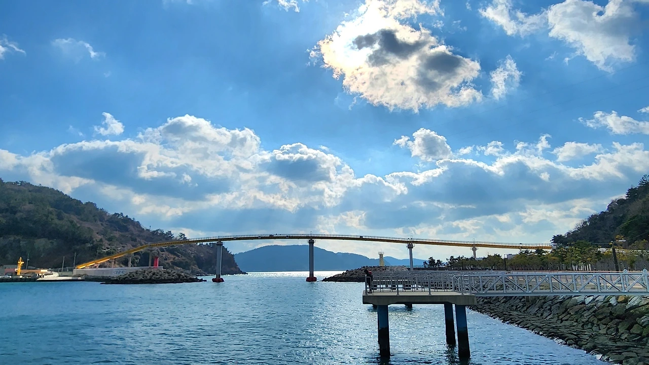 해 질 녘 뱃고동 소리가 장엄하게 울리면, 어김없이 여객선 깃발이 펄럭이던 그 아릿한 마당널을 휘감고 직선 길에 접어드니, 백파의 호위를 받고 있던 알마도가 성큼 다리에 올라 들뜬 볼륨을 높인다.