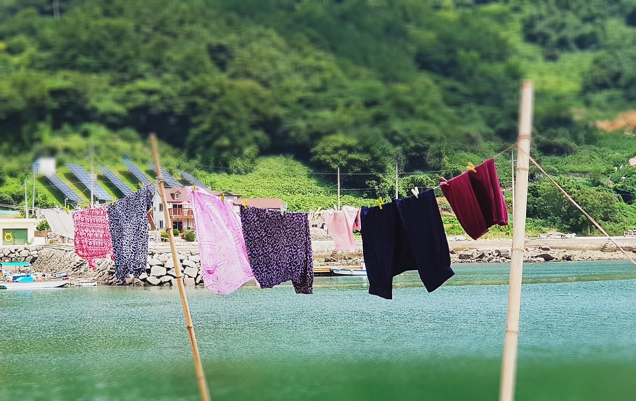 텅 빈 고향집 옥상 빨랫줄에 매달려
