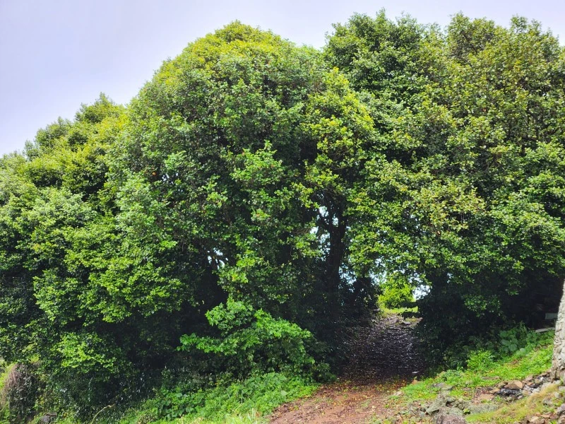마침내 좁은 오솔길과 아치를 이루는 동백 터널을 지나자 잠시 숲이 비켜간 하늘 아래 낮은 무덤 하나가 있었다. 그리고 그 길을 휘어 돌아 곧장 가리키는 방향에 높다란 돌담이 막다른 숲 사이에 아슬하게 걸쳐 있었다.