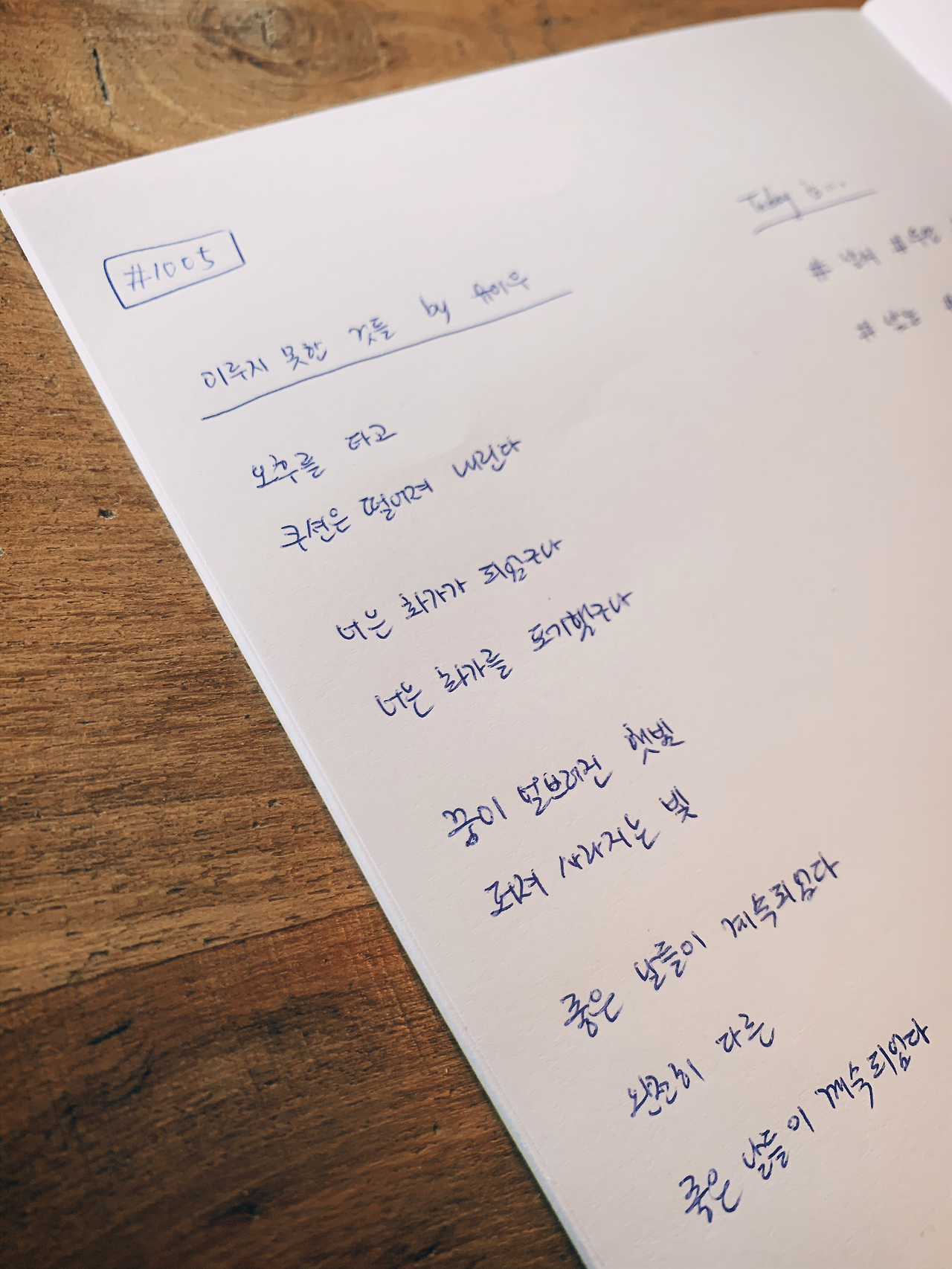 #프로젝트100 #1일1시 #손으로읽는시 #하루한편시필사 #이루지못한것들 #유이우