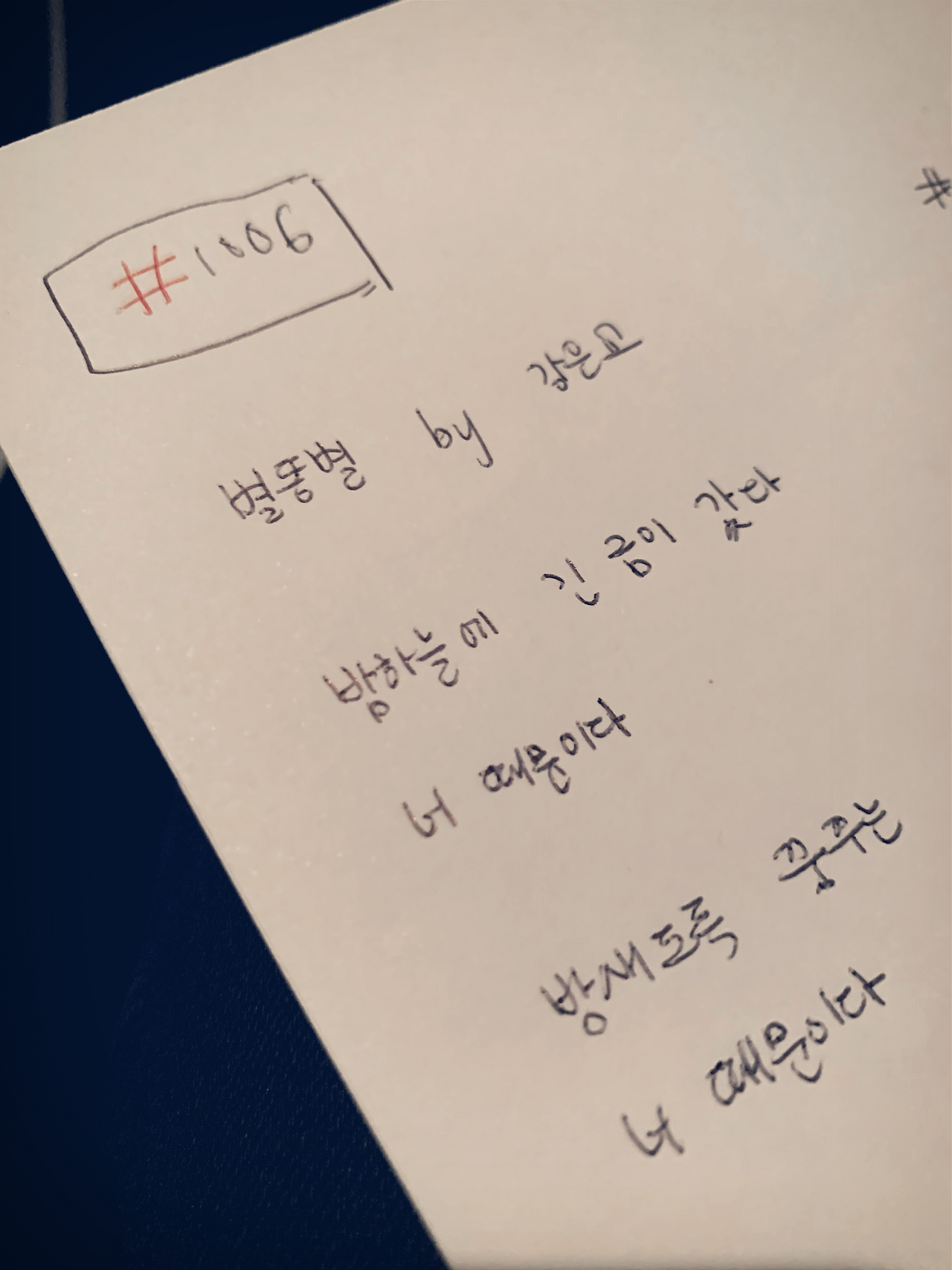 #프로젝트100 #1일1시 #손으로읽는시 #하루한편시필사 #별똥별 #강은교